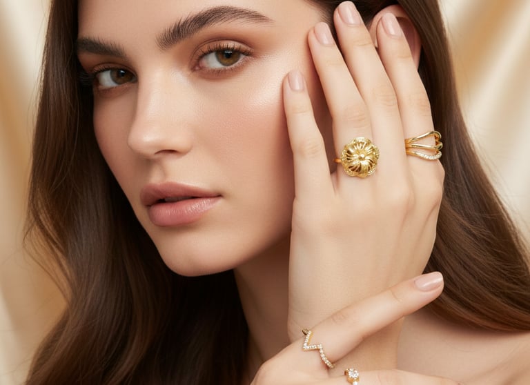 Rings, and premium one gram gold jewellery for women.